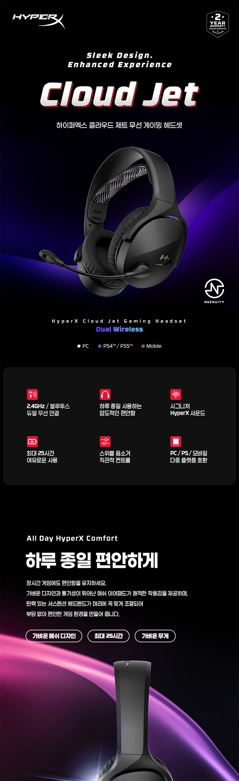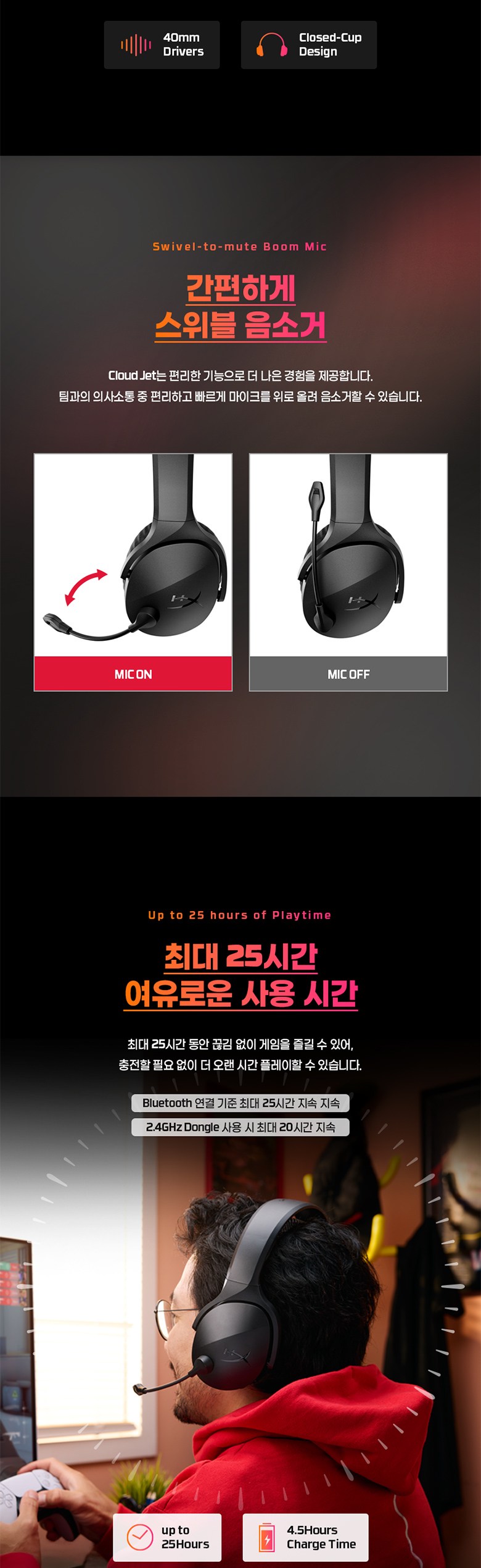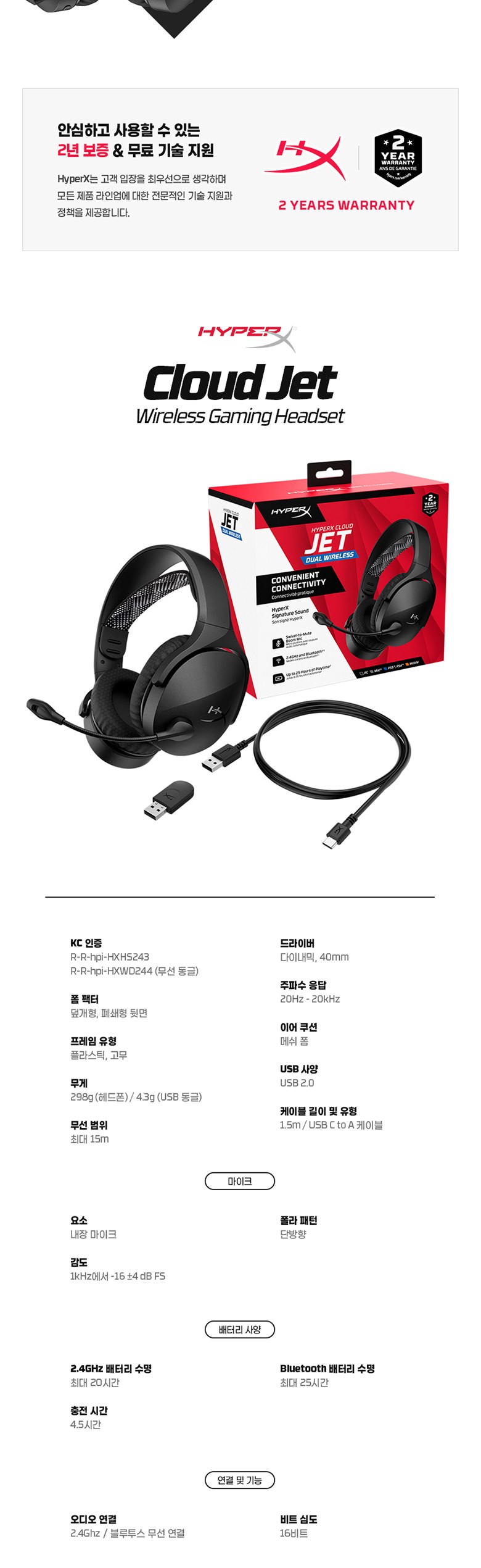 | 품명 및 모델명 | 하이퍼엑스 Cloud Jet 헤드셋 / HXHS243 | KC 인증정보 | 본품:R-R-hpi-HXHS243/동글:R-R-hpi-HXWD244/배터리:YU10659-24002 |