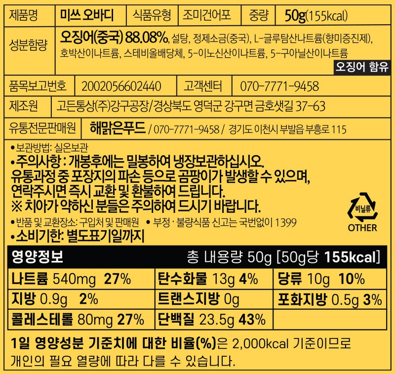 | 생산자 및 소재지 | 컨텐츠참조 | 제조연월일, 소비기한 또는 품질유지기한 | 소비기한(또는 유통기한) : 2026년 05월 26일 이거나 그 이후인 상품<br />제조년월일 : 2025년 05월 27일 이후인 제조상품 |