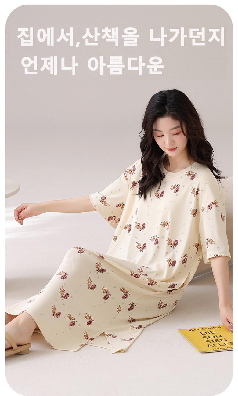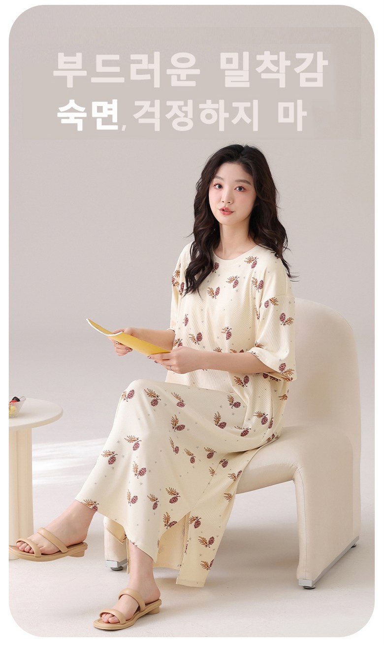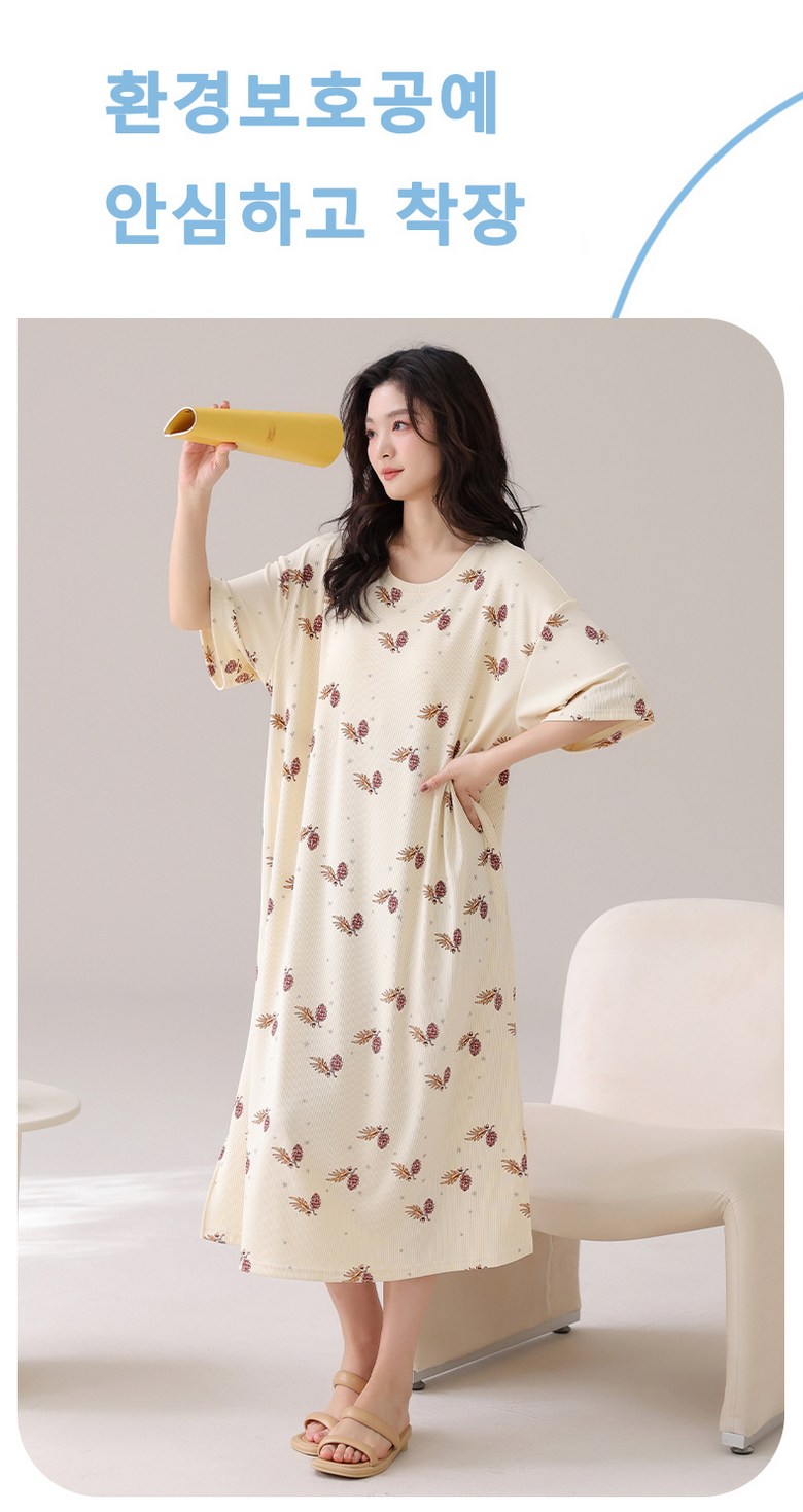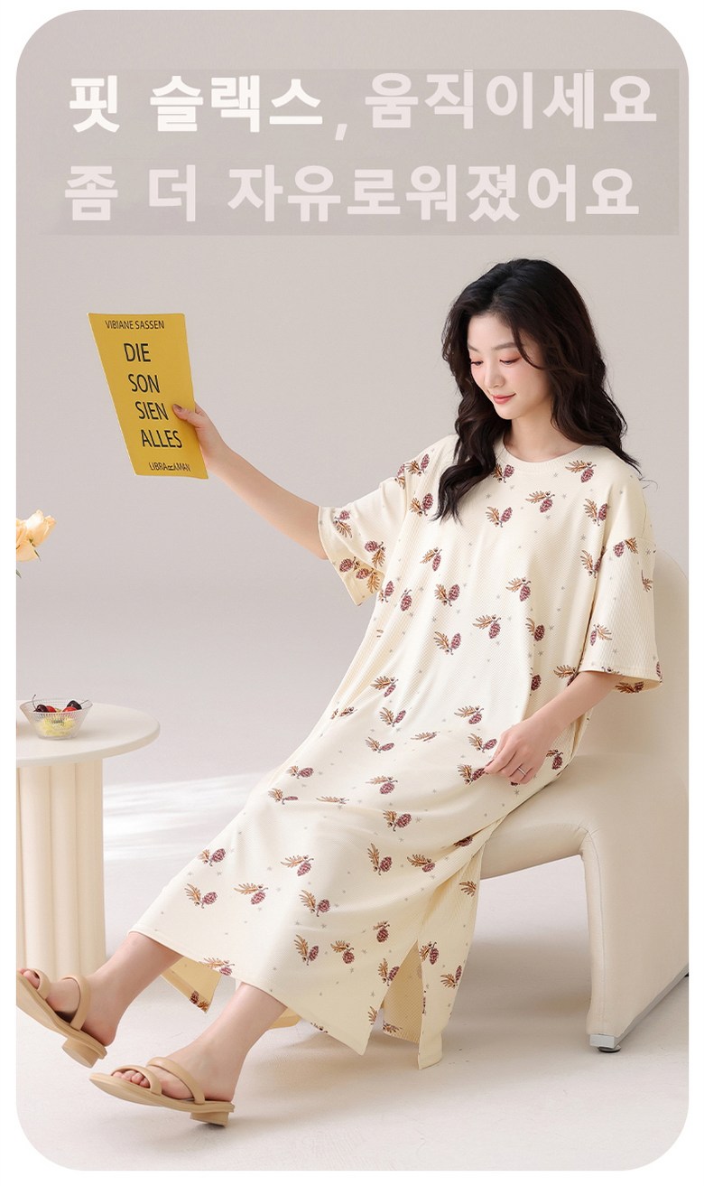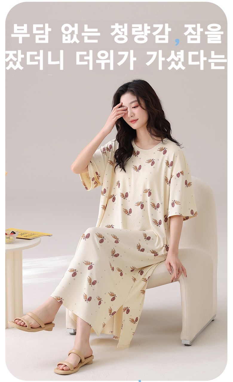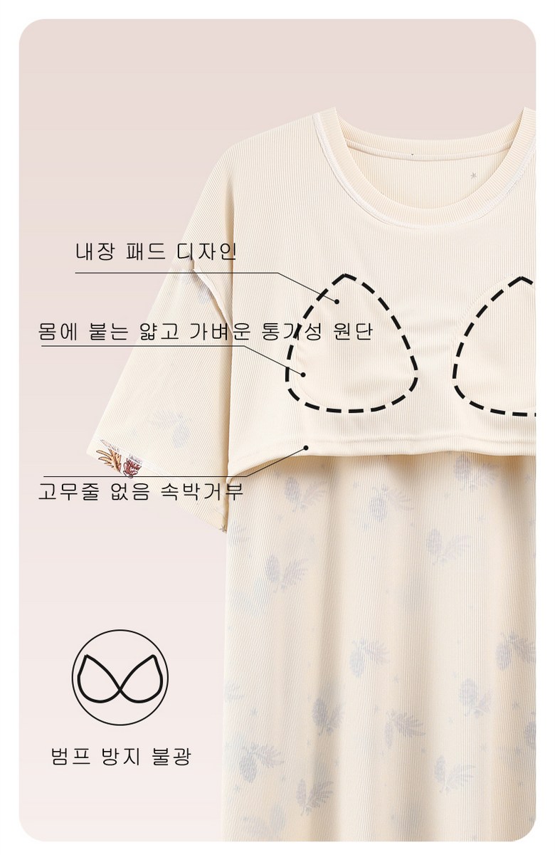 스타일닥터 2025년 여성용 빅사이즈 원피스잠옷 브라탑 일체형 반팔원피스 파자마