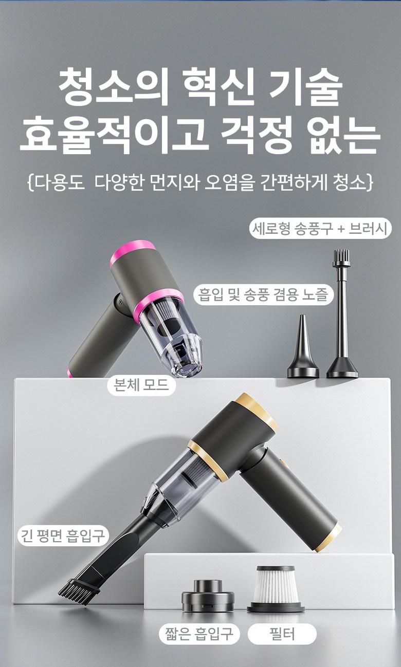 NEXFLOW 무선 강력 차량용/가정용 진공청소기 핸드허브 360도 전처리