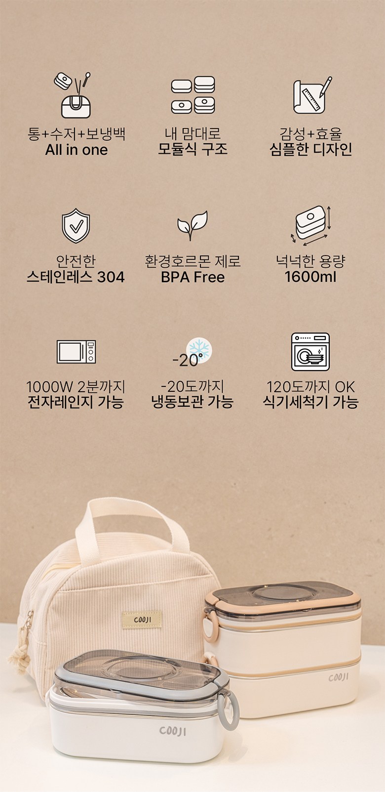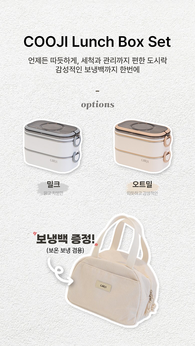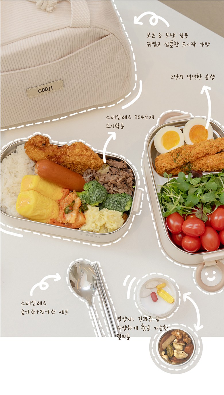 | 구성품 | 도시락통, 도시락수저, 도시락가방 | 크기 | 210 * 115 * 140 mm |