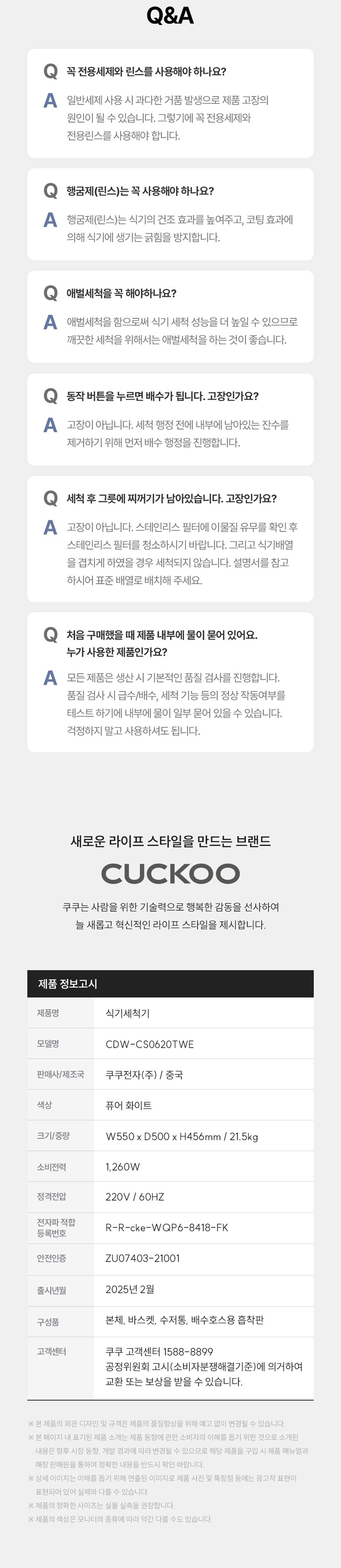 | 품명 및 모델명 | 전기 식기세척기 / CDW-CS0620TWE | KC 인증정보 | ZU07403-21001 / R-R-cke-WQP6-8418-FK |