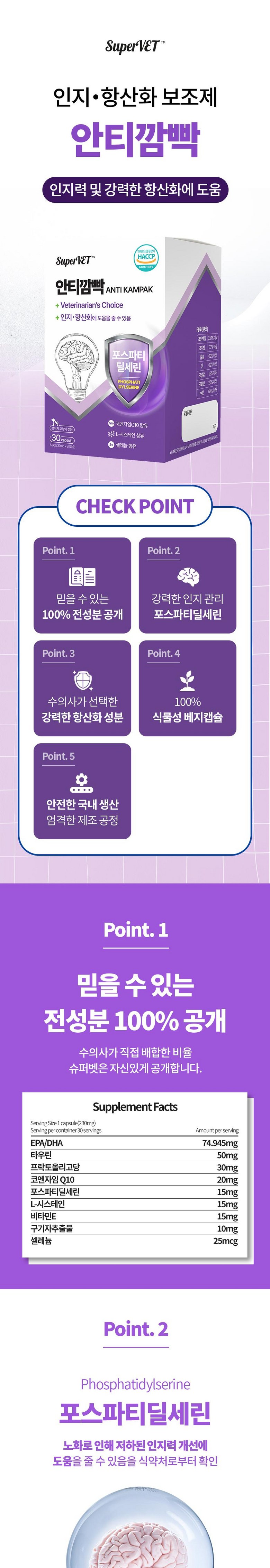 강아지 고양이 인지 영양제 뇌 치매 치매예방 항산화제 슈퍼벳 안티깜빡