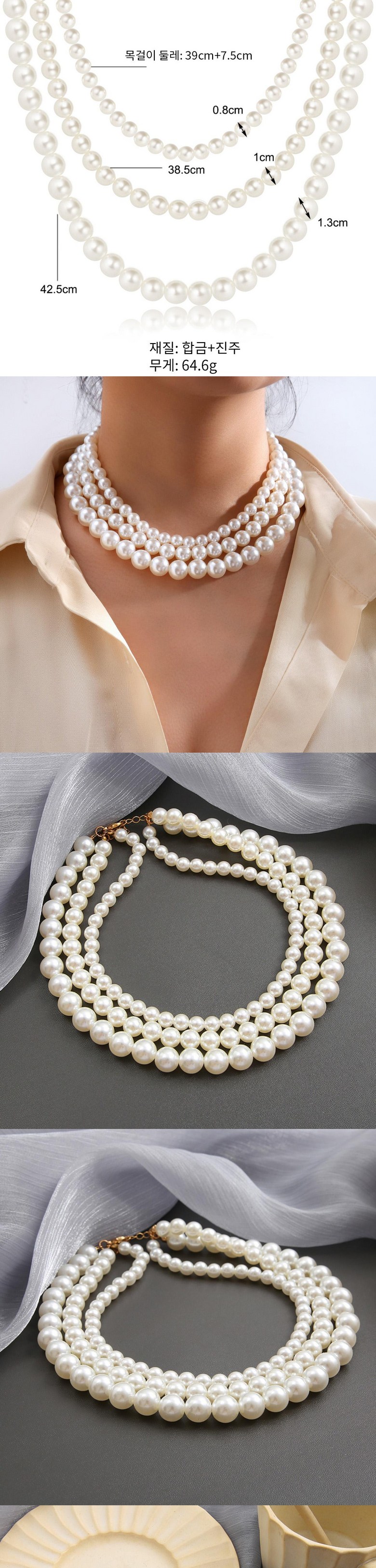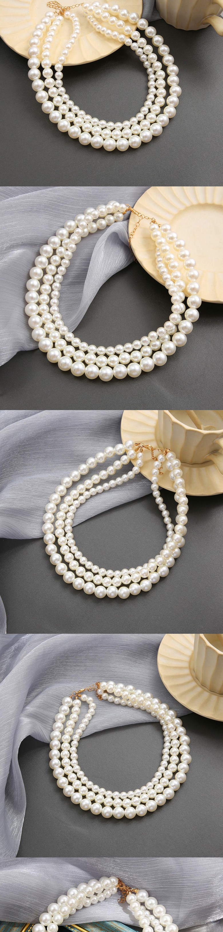 RoseAria 여성 펄 트리플 레이어 목걸이