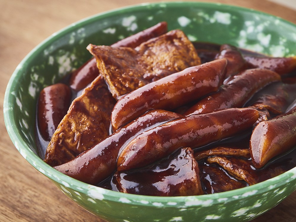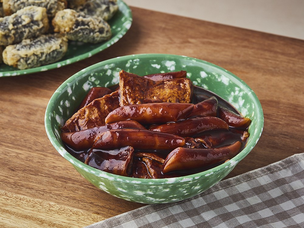 이제는 집에서도 짜장떡볶이를 손쉽게 만들 수 있어요. 동봉된 소스는 볶음춘장과 볶음양파분말을 사용해 풍미가 깊고 진하답니다. 쫀득쫀득한 밀떡과, 먹기 좋은 크기의 미니 사각 어묵을 함께 보내드리니 간단히 끓여보세요.