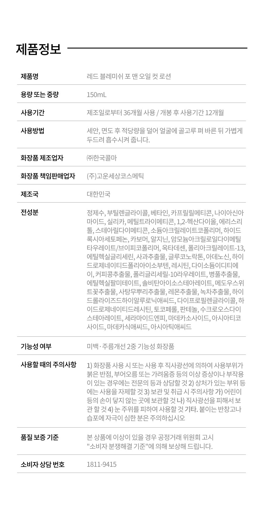 | 용량(중량) | 150ml | 제품 주요 사양 | 모든 피부용 |