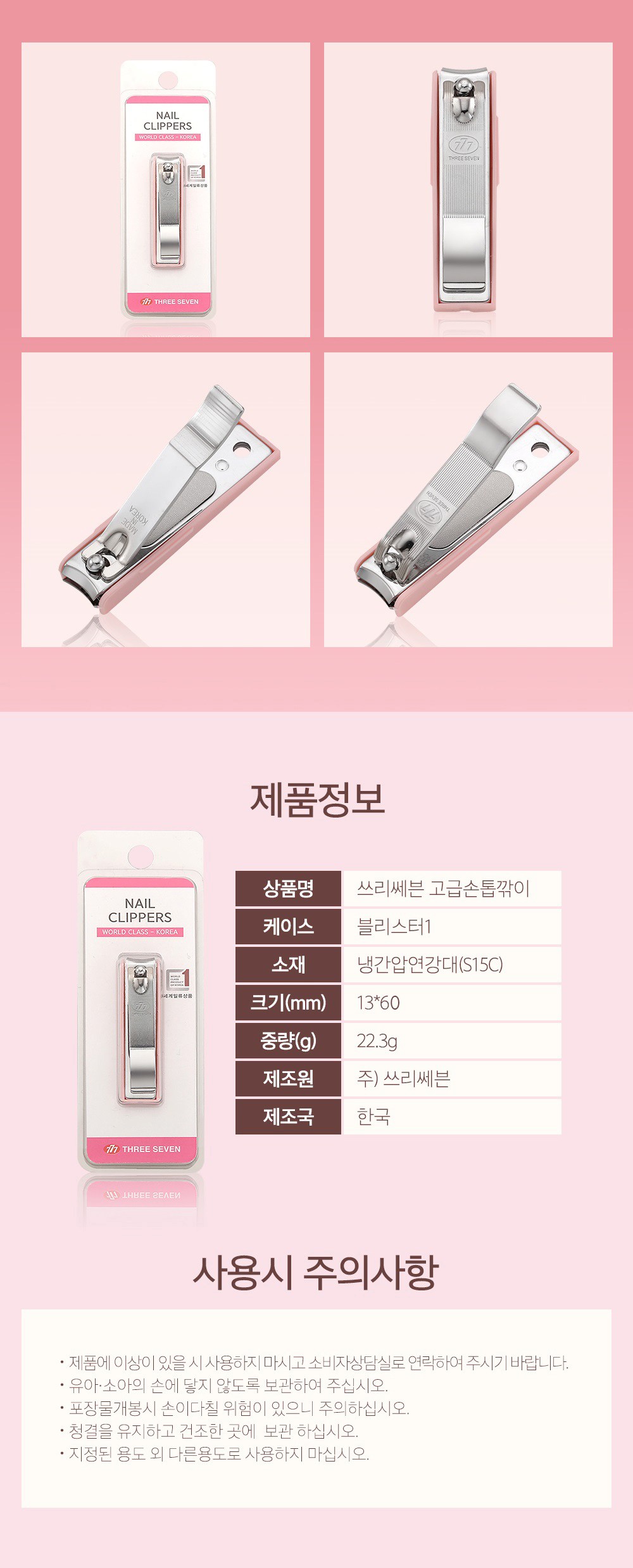 | 품명 및 모델명 | 쓰리세븐 고급 손톱깎이 | 인증/허가 사항 | 해당없음 |