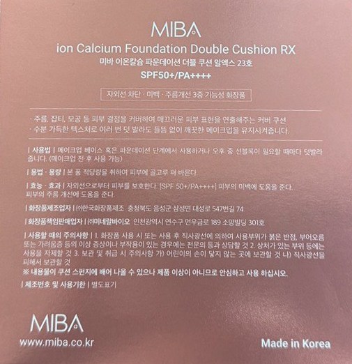 | 화장품제조업자, 화장품책임판매업자 및 맞춤형화장품판매업자 | (주)한국화장품제조 / (주)미네랄바이오 | 제조국 | 대한민국 |
