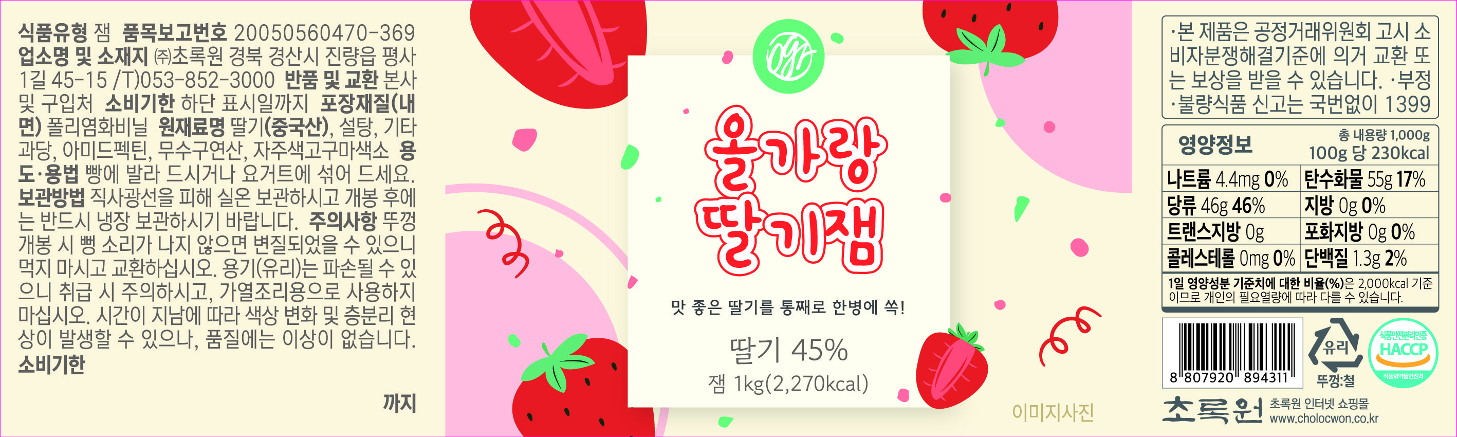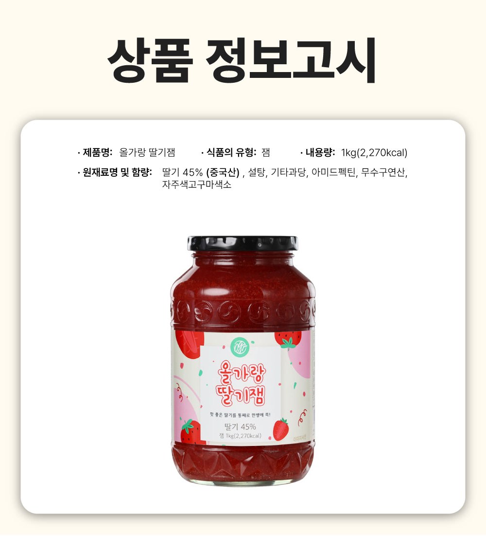 | 제품명 | 올가랑딸기잼 | 식품의 유형 | 컨텐츠 참조 |