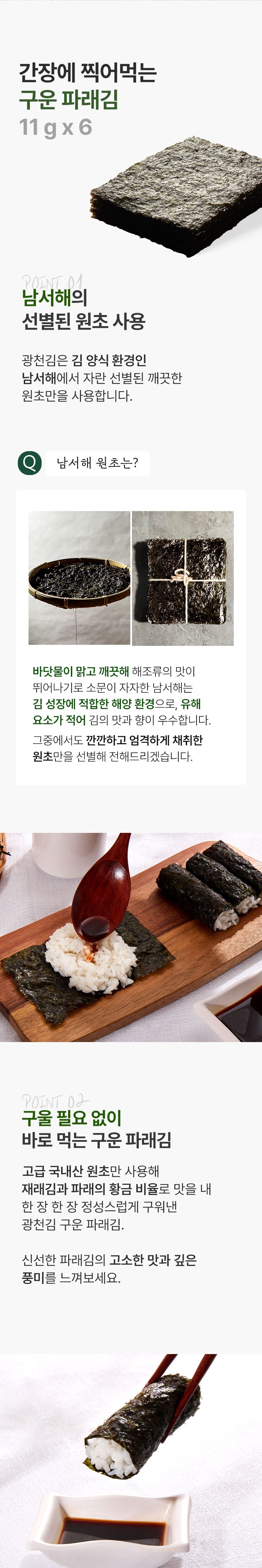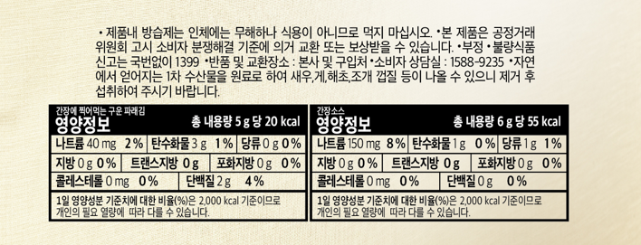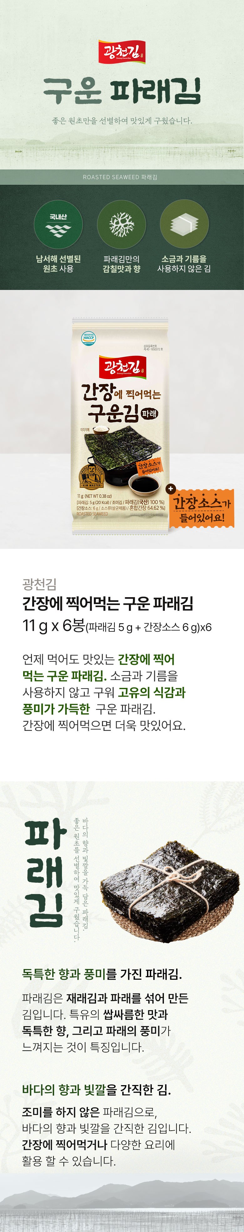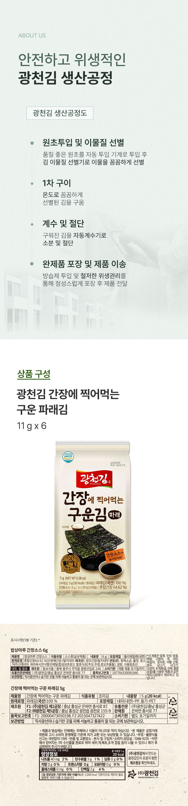 | 포장단위별 내용물의 용량(중량), 수량 | (소스 6g + 김 5g)* 6개 | 원재료명 및 함량 | 컨텐츠 참조 |