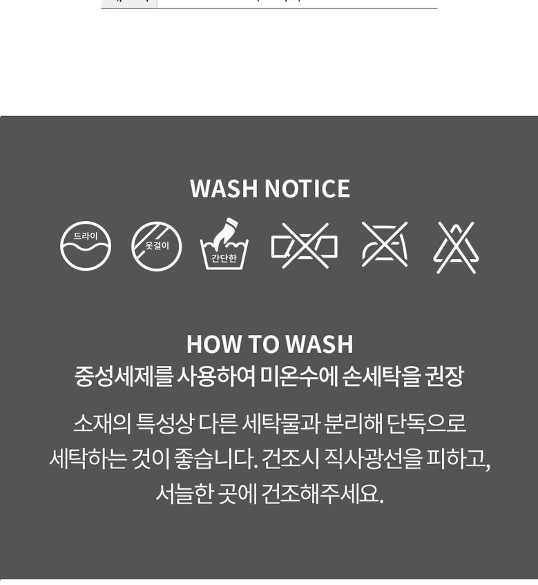 | 제조국 | 상품 상세페이지 참조 | 취급시 주의사항 | 상품 상세페이지 참조 |