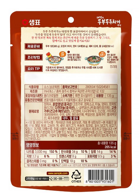 | 포장단위별 내용물의 용량(중량), 수량 | 135g,4개 | 원재료명 및 함량 | 컨텐츠 참조 |