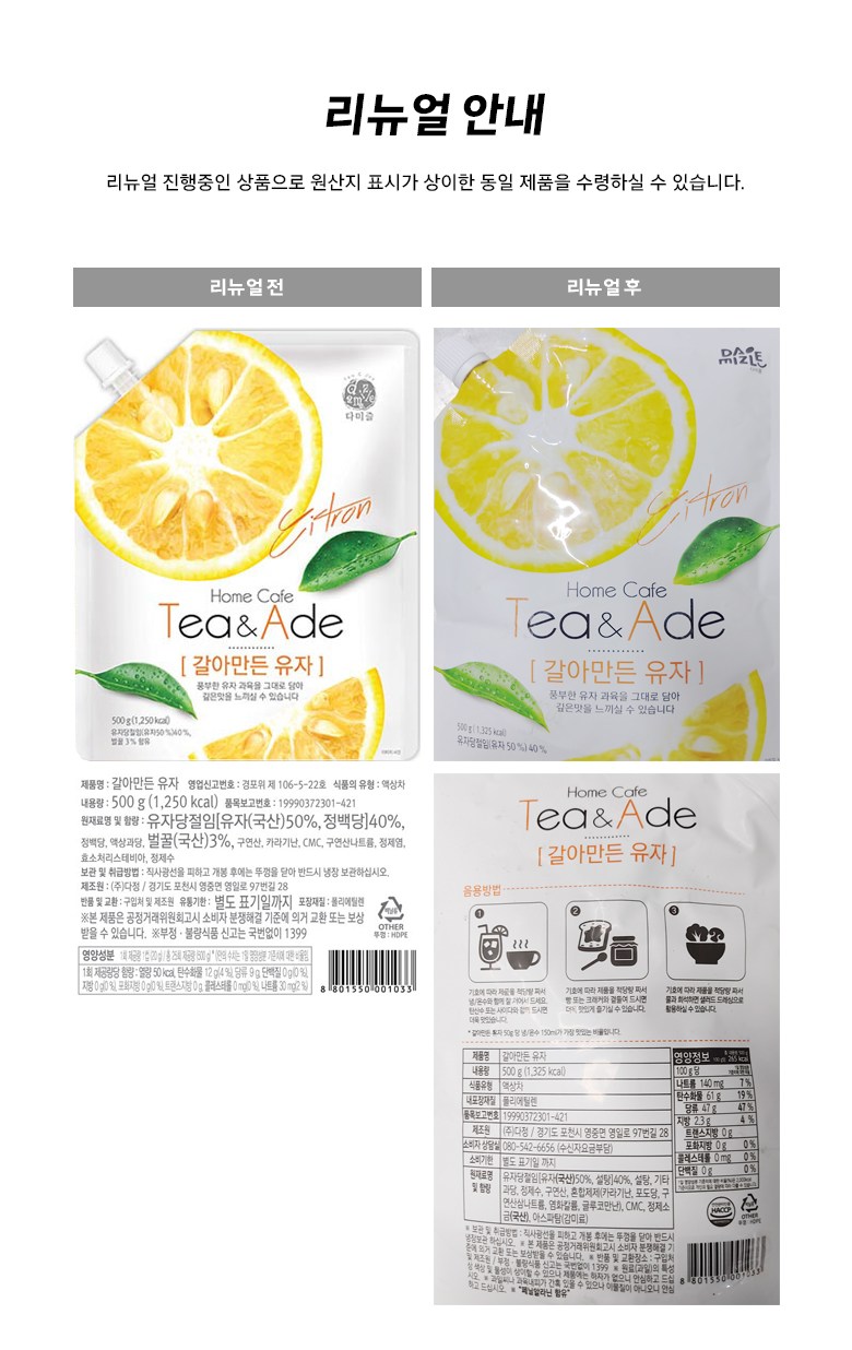 | 제품명 | 후레쉬 유자액 | 식품의 유형 | 액상차 |