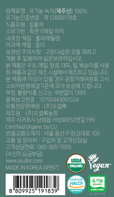 | 제품명 | 오셜록 제주순수녹차 | 식품의 유형 | 컨텐츠 참조 |