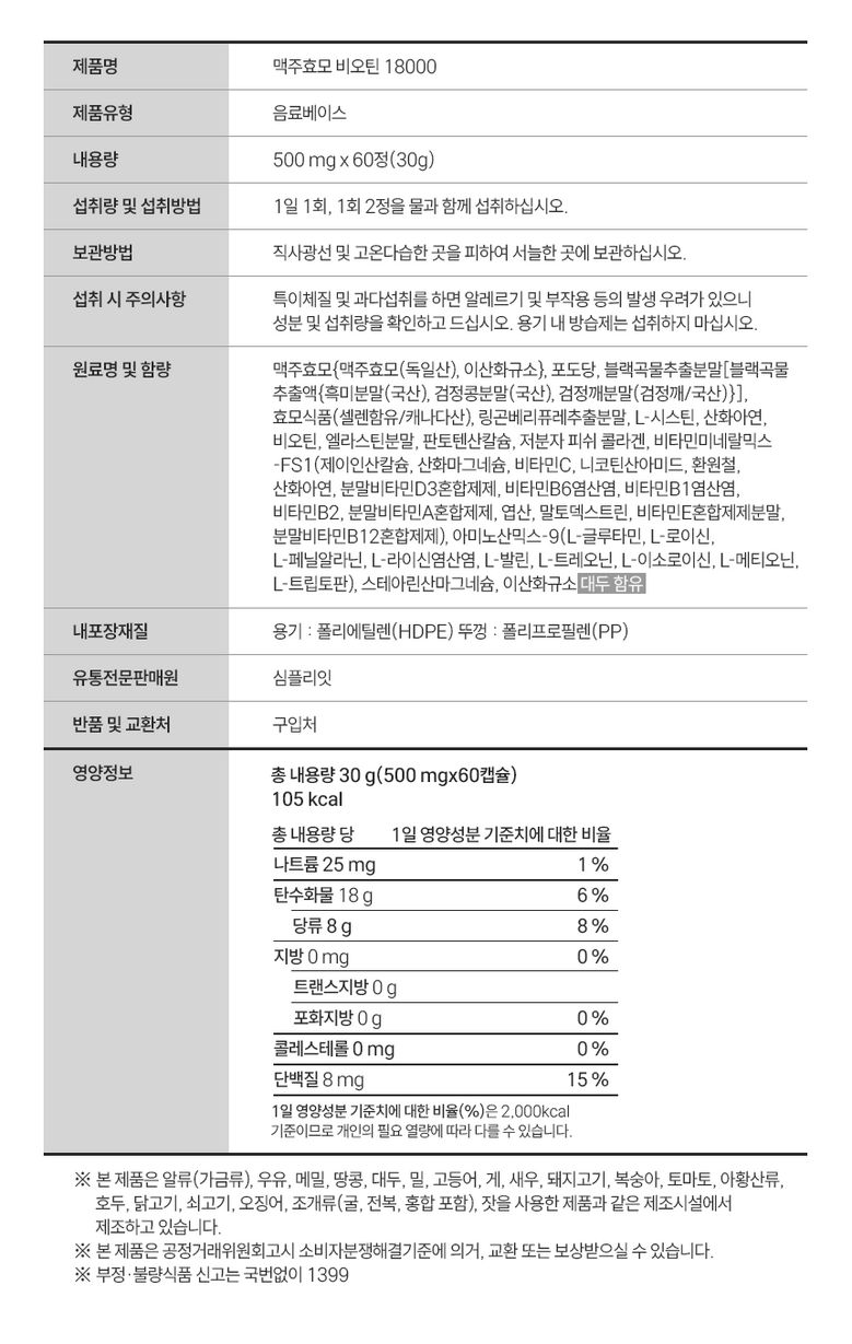 | 원재료명 및 함량 | 상품 상세페이지 참조 | 영양성분 | 상품 상세페이지 참조 |