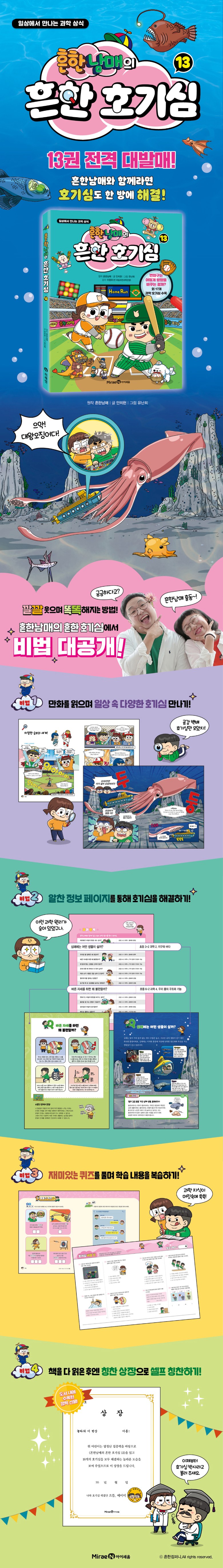 일상 속에 숨어 있는 수많은 과학 원리를 함께 찾아 보아요! 《흔한남매의 흔한 호기심》 13권에서는 ‘화살이 똑바로 날아가지 않는 이유는 뭘까?’, ‘변화구는 어떻게 방향을 바꾸는 걸까?’ 등 스포츠와 관련된 호기심과 ‘바다는 얼마나 깊을까?’, ‘오래 뛰면 왜 목에서 피 맛이 날까?’ 등 일상에서 한 번쯤은 궁금증을 느껴 봤을 18개의 호기심을 모았습니다.