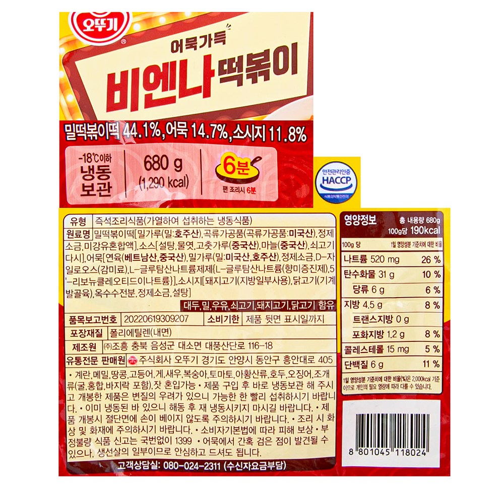 | 제품명 | 비엔나 떡볶이 | 식품의 유형 | 컨텐츠 참조 |