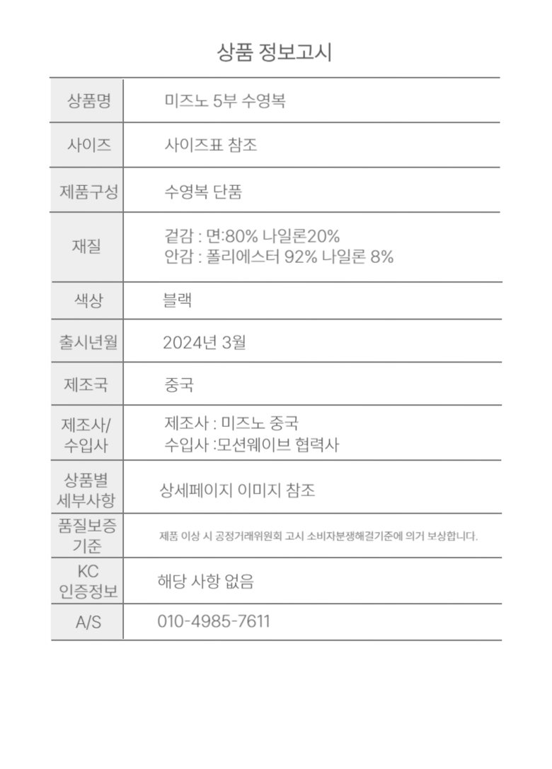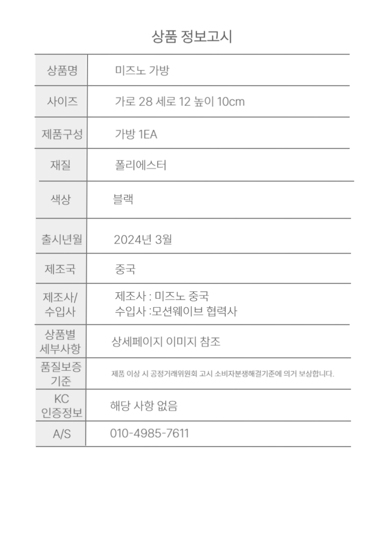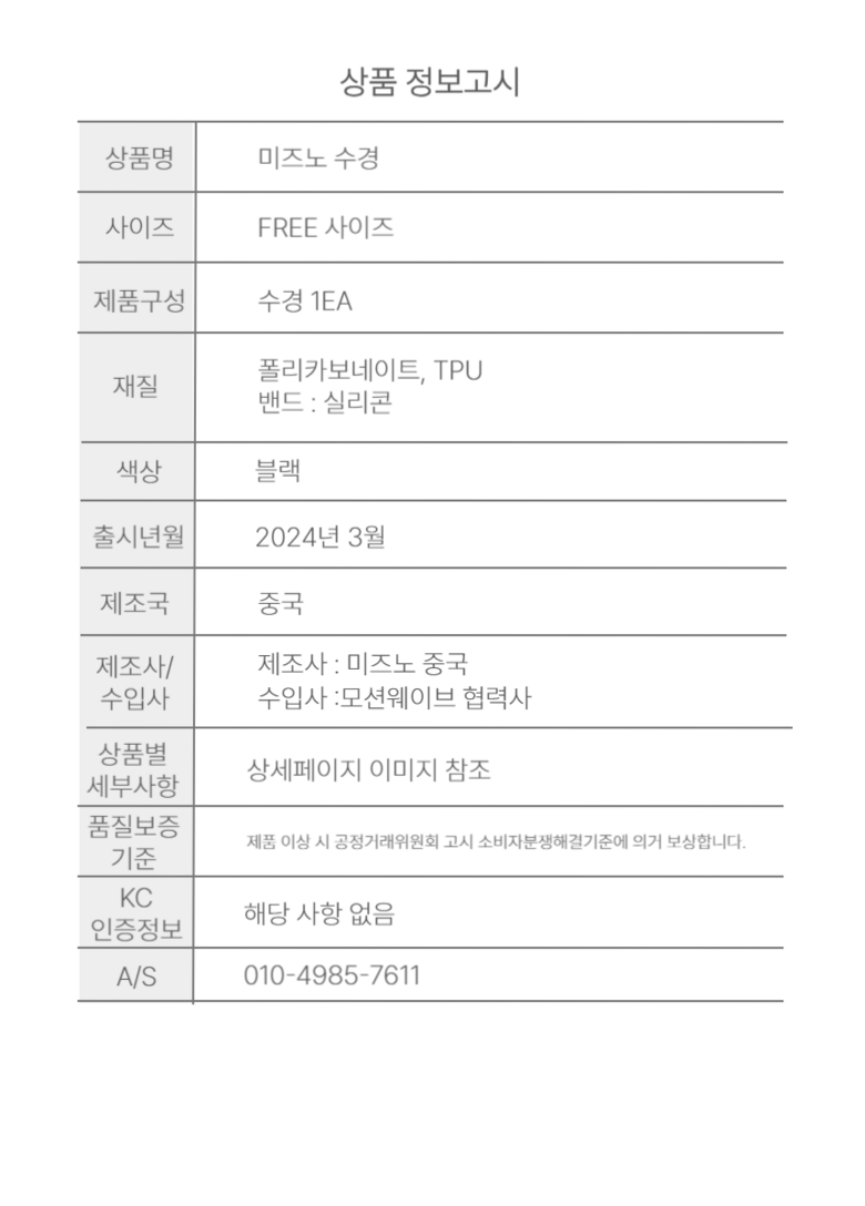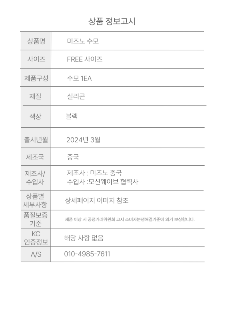 | 품명 및 모델명 | 상품 상세페이지 참조 | KC 인증정보 | 해당없음 |