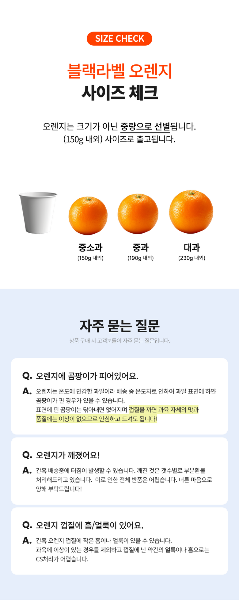 | 품목 또는 명칭 | 수입사직송 노마진 블랙라벨 고당도 오렌지 | 포장단위별 내용물의 용량(중량),수량,크기 | 상품 상세페이지 참조 |