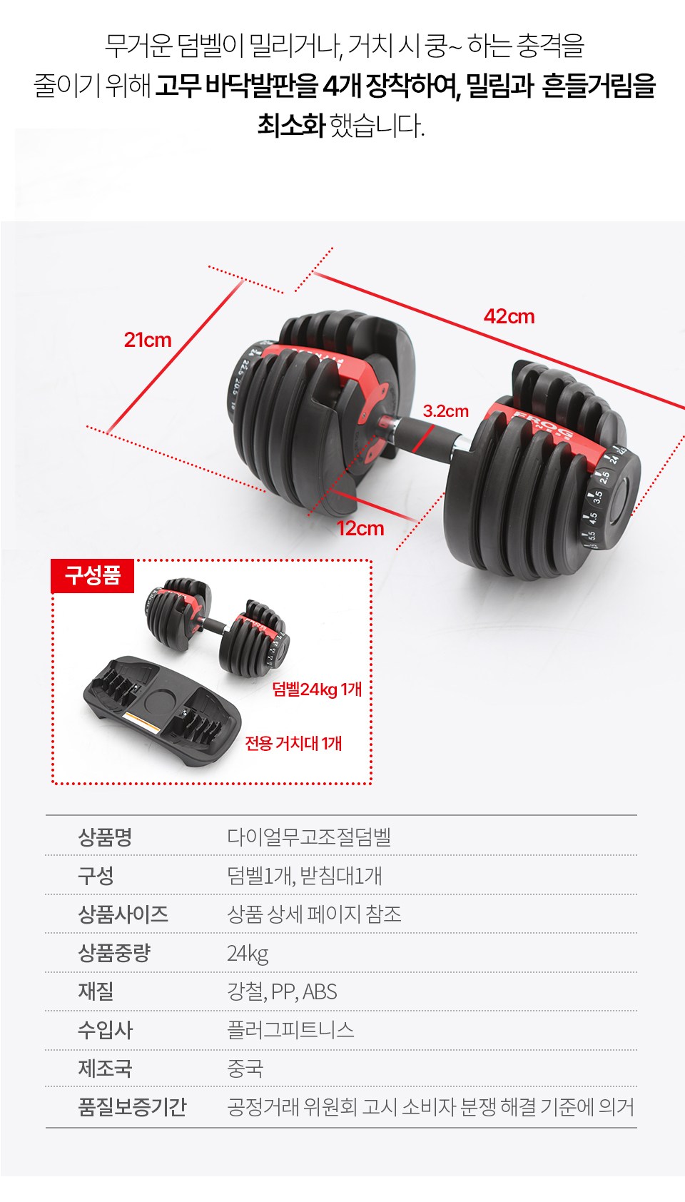 | 품명 및 모델명 | 플러그피트니스 다이얼 무게조절 덤벨 | KC 인증정보 | 해당없음 |