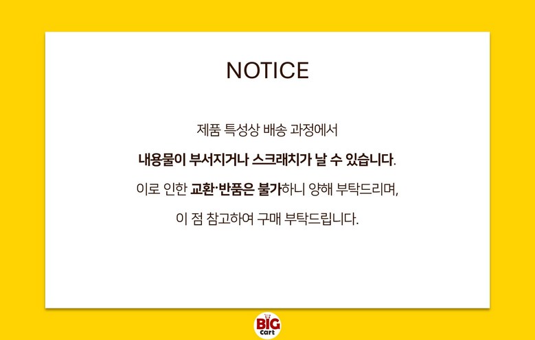 - ㆍ모니터 해상도의 차이로 인해 색상이나 이미지가 실제와 달라, 고객이 단순 변심으로 교환/반품을 무료로 요청하는 경우