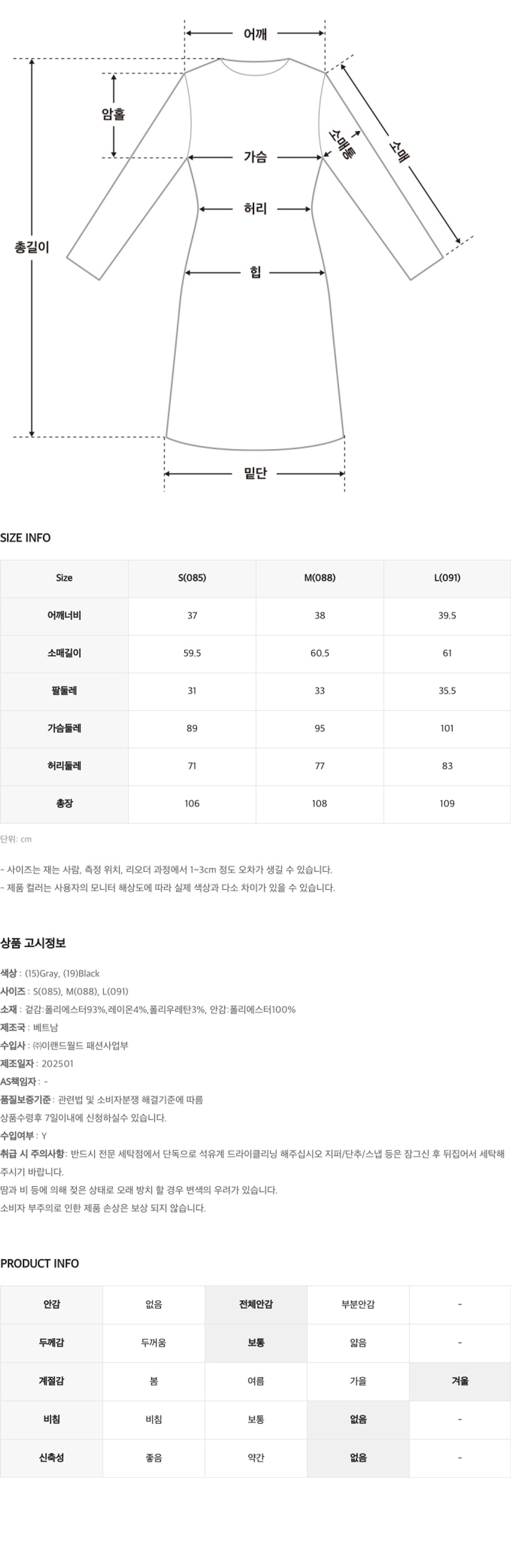 | 치수 | 컨텐츠 참조 | 제조자(수입자) | 이랜드 베트남 / (주)이랜드월드 패션사업부 |