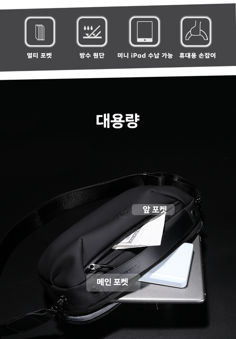 - 넉넉한 수납공간: 태블릿, 지갑, 스마트폰 등 필수 아이템 수납 가능.