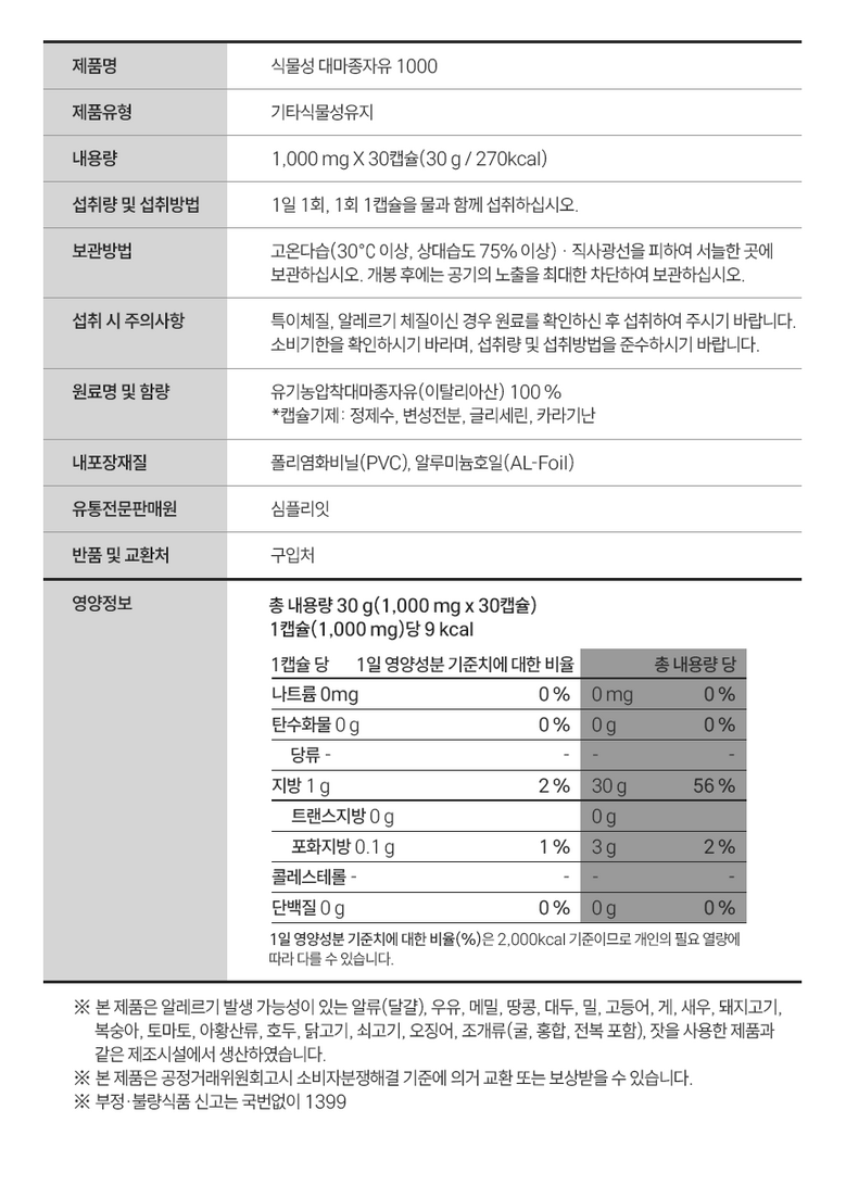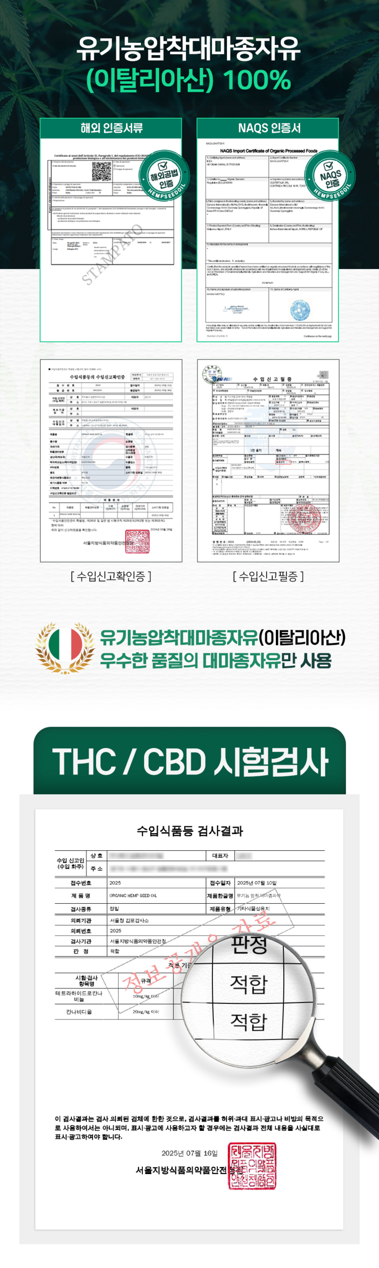 | 원재료명 및 함량 | 유기농 냉압착 햄프씨드오일(이탈리아산) 100% | 영양성분 | 상품 상세페이지 참조 |