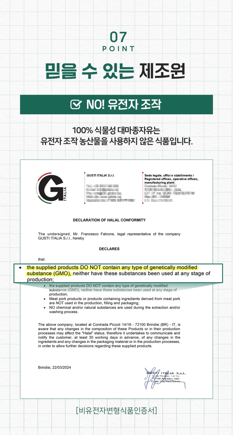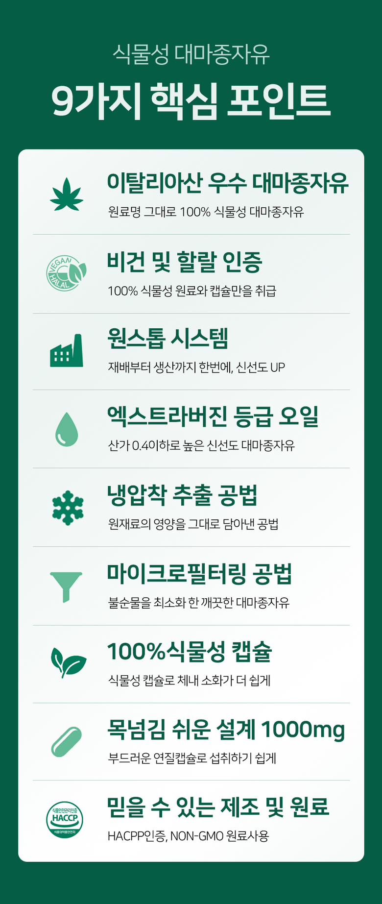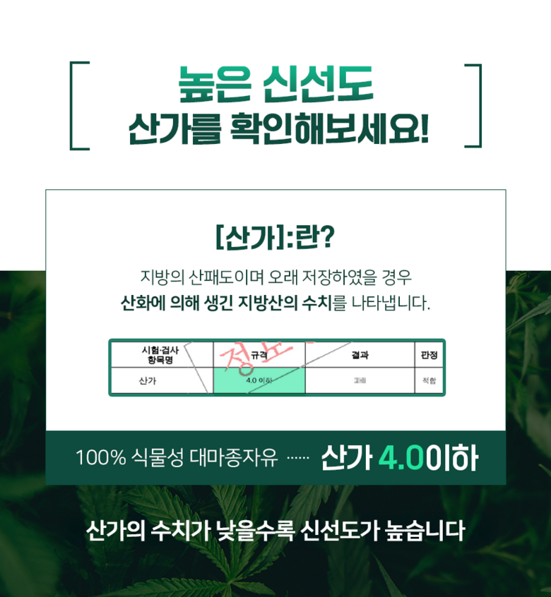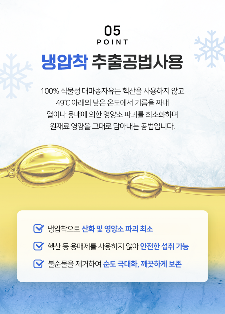 - 식물성 오일 추출방식: 냉/저온