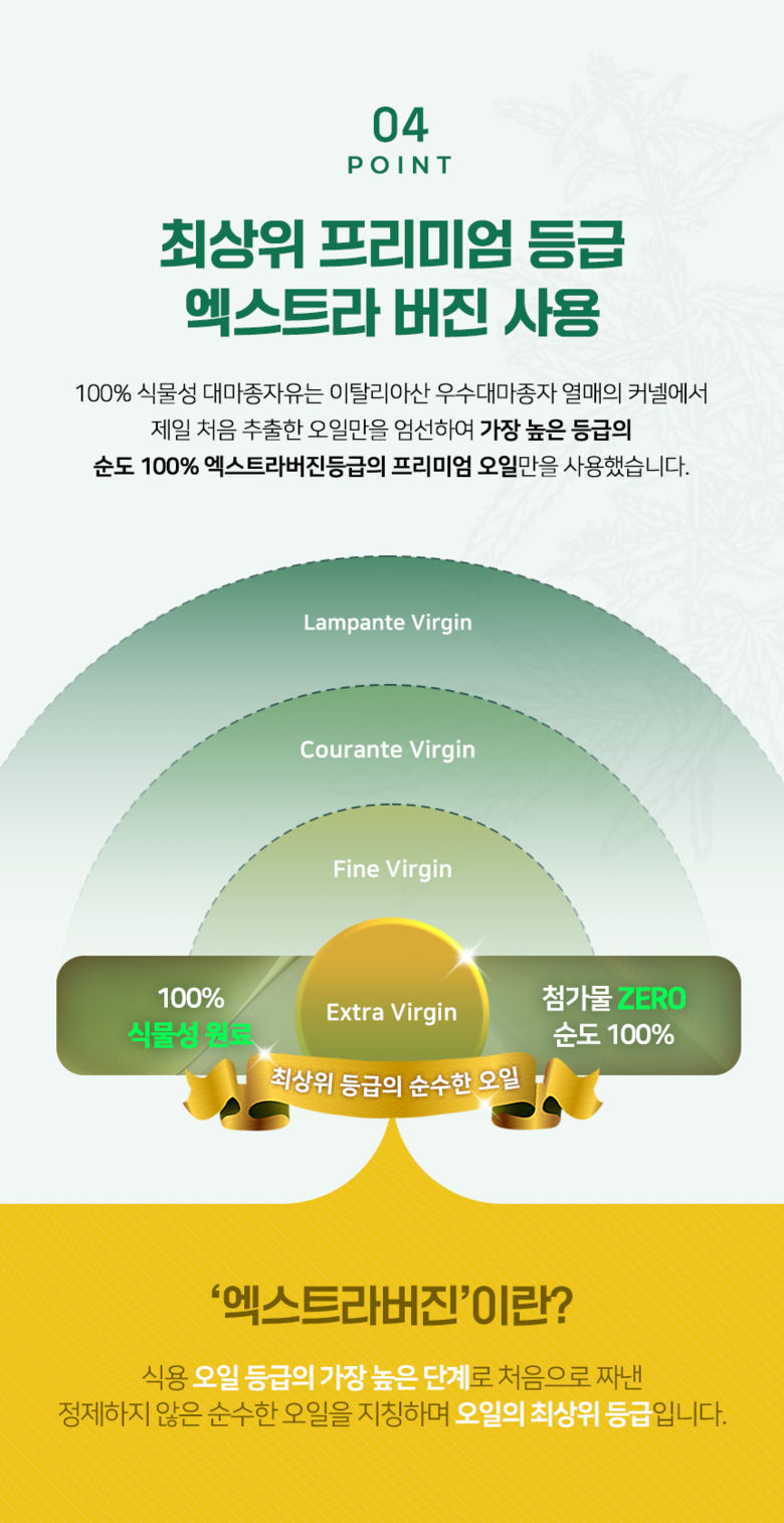 계좌이체- 식물성 오일 등급: 엑스트라버진