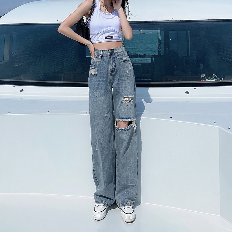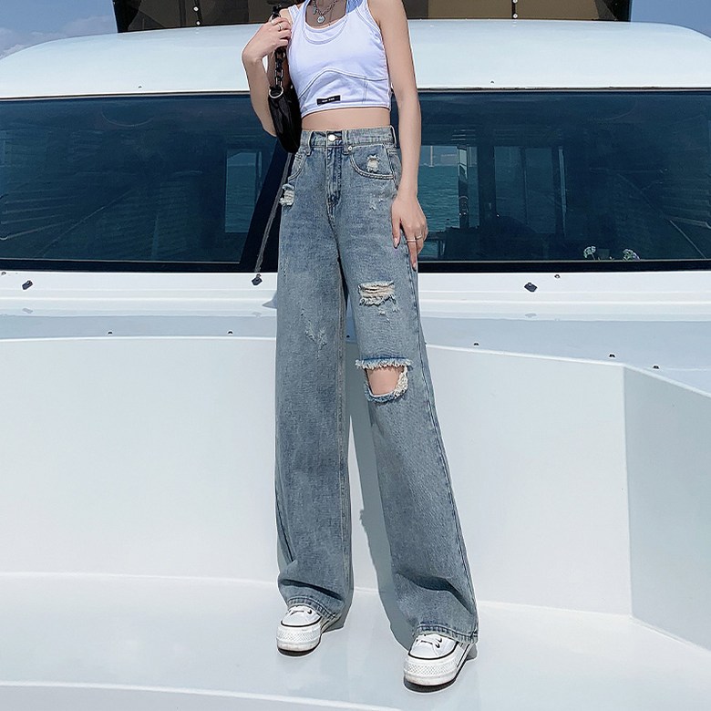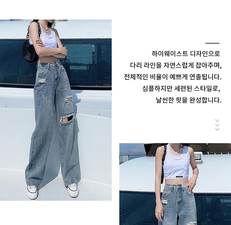 투니스 여성 하이 웨이스트 와이드 데님 팬츠