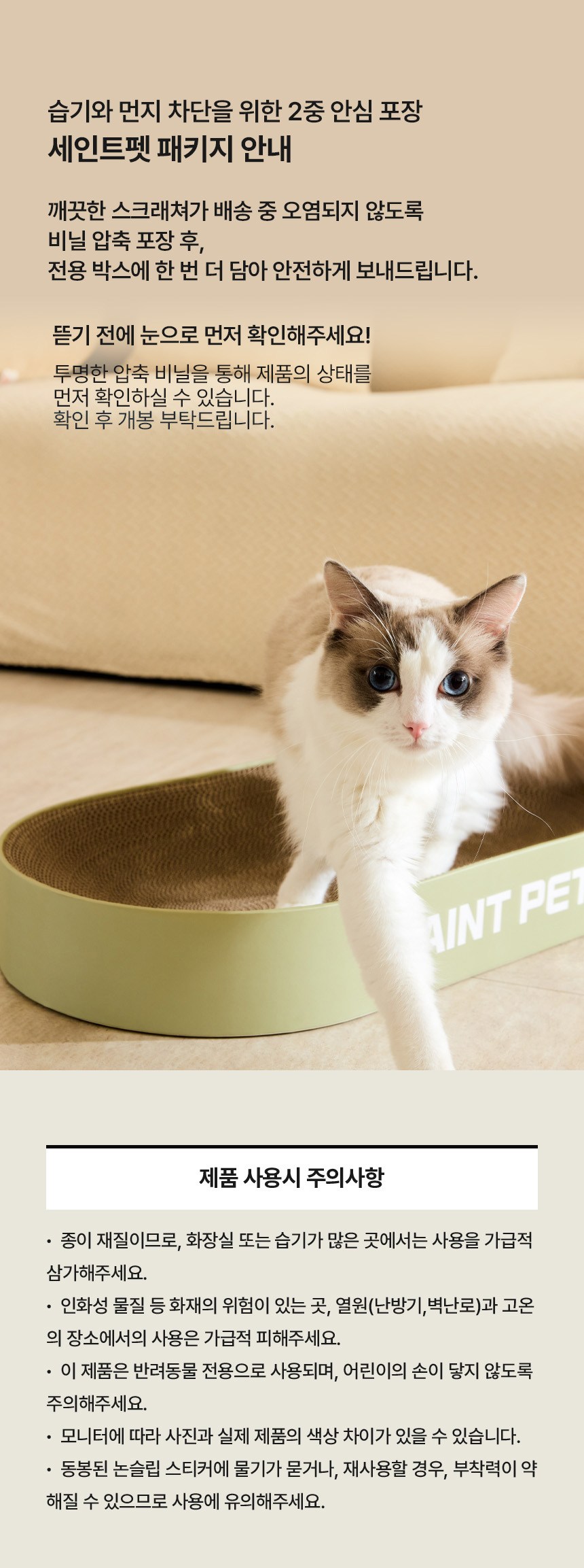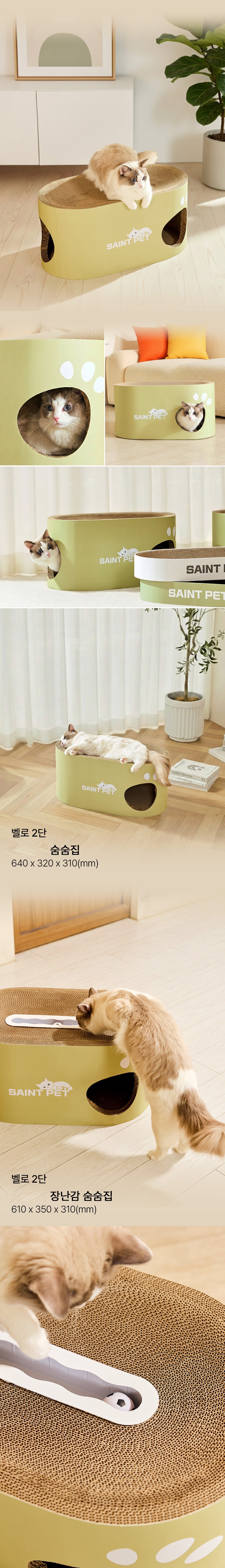 | 품명 및 모델명 | 세인트펫 고양이 스크래쳐 숨숨집 대형 2단 올리브그린 | 인증/허가 사항 | 해당없음(14세이상) |