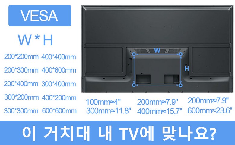유의사항: 구매 전, TV의 크기, 무게 및 VESA 홀 패턴을 확인해 주세요!