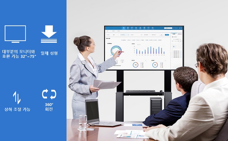 이동식 TV 거치대를 안정적이고 편리하게 이동시켜 TV나 모니터를 가볍고 자유롭게 이동할 수 있습니다.