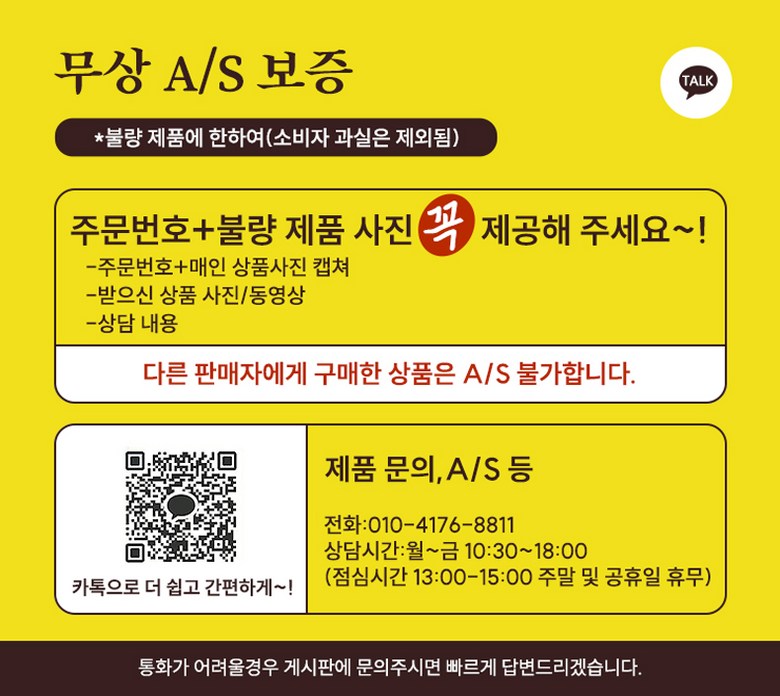 - ㆍ모니터 해상도의 차이로 인해 색상이나 이미지가 실제와 달라, 고객이 단순 변심으로 교환/반품을 무료로 요청하는 경우