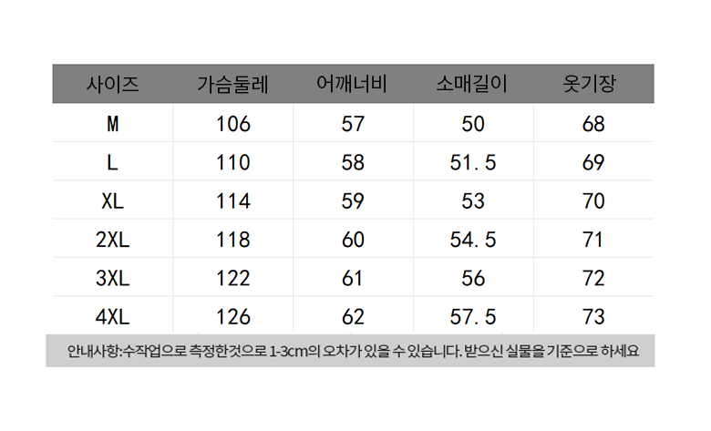 - 상의 사이즈: 남성 XXXXL