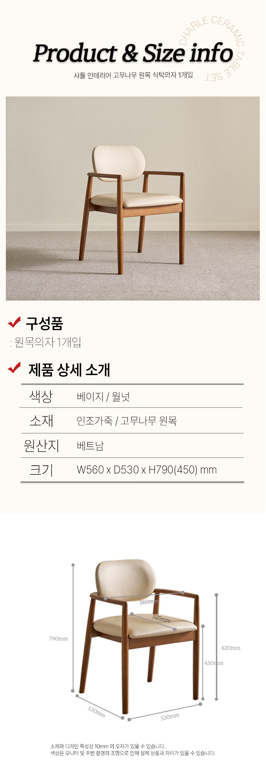 루시드퍼니처 샤를 인테리어 고무나무 원목 식탁의자 방문설치, 베이지 + 월넛, 1개