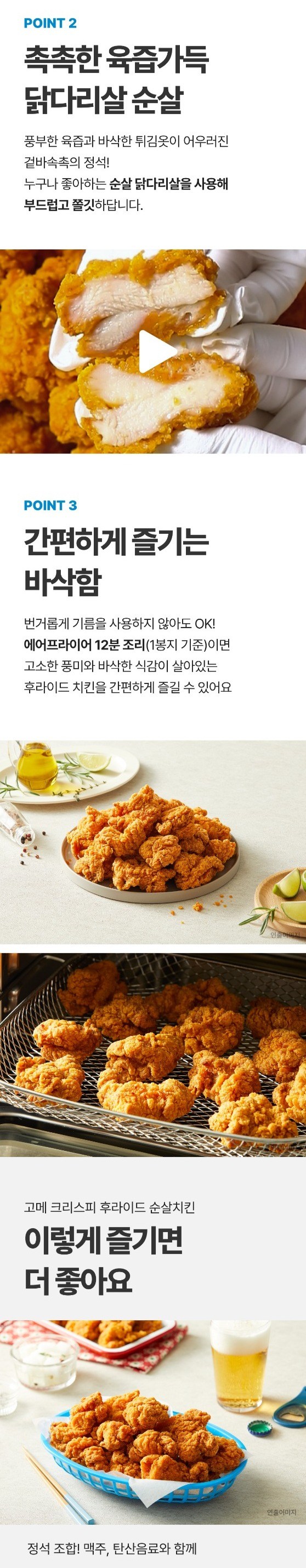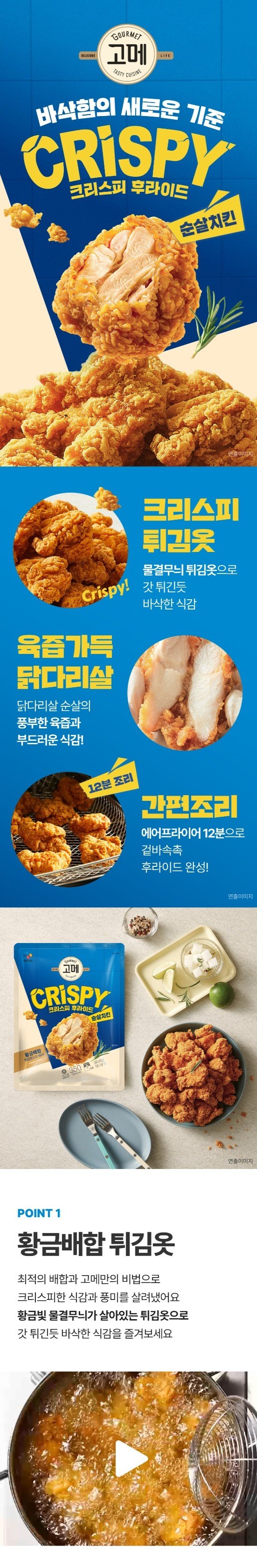 | 제품명 | 고메 크리스피 후라이드 순살치킨 | 식품의 유형 | 컨텐츠 참조 |