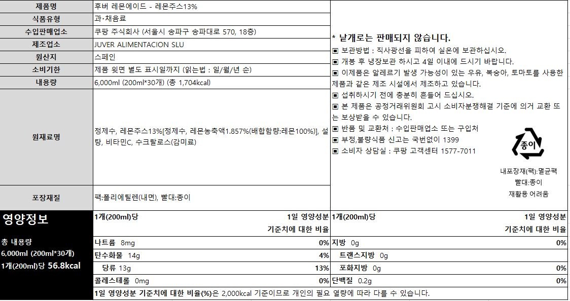| 포장단위별 내용물의 용량(중량), 수량 | 컨텐츠 참조 | 원재료명 및 함량 | 컨텐츠 참조 |