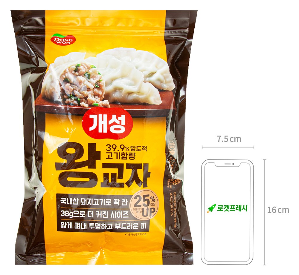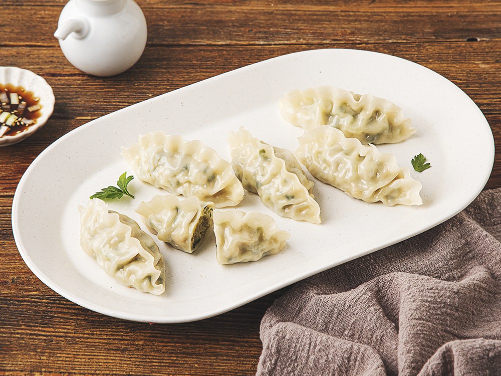 큼직한 크기를 자랑하는 개성 왕교자예요. 얇게 펴내 투명한 만두피 속, 돼지고기를 알차게 채워 넣었답니다. 반죽 속 공기를 제거하는 VDP 공법을 사용해 특히 쫄깃쫄깃한 식감을 즐길 수 있어요. 한입 먹으면, 구수한 육즙과 함께 각종 채소가 입안에서 고소하게 녹아들 거예요.