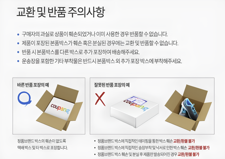 - ㆍ교환/반품에 관한 일반적인 사항은 판매자가 제시사항보다 관계법령이 우선합니다.