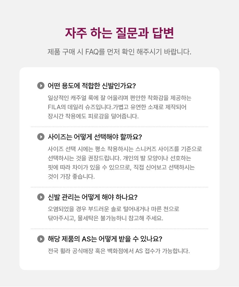 | 제품의 주소재(운동화인 경우에는 겉감,안감을 구분하여 표시) | 상품 상세페이지 참조 | 색상 | 상품 상세페이지 참조 |
