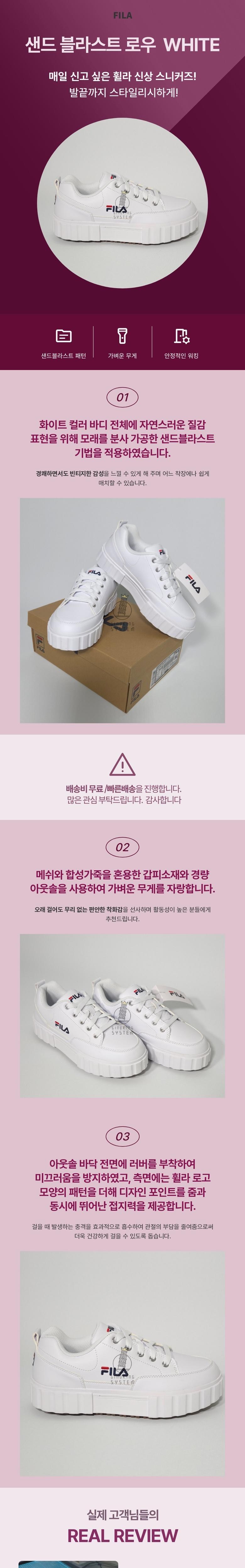 FILA 데일리 슈즈 샌드 블라스트 로우 화이트 컬러 000 (흰색) 1TM01563E