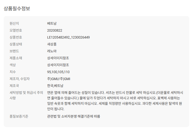 다만, 판매자의 제시사항이 관계법령보다 소비자에게 유리한 경우에는 판매자 제시사항이 적용됩니다.