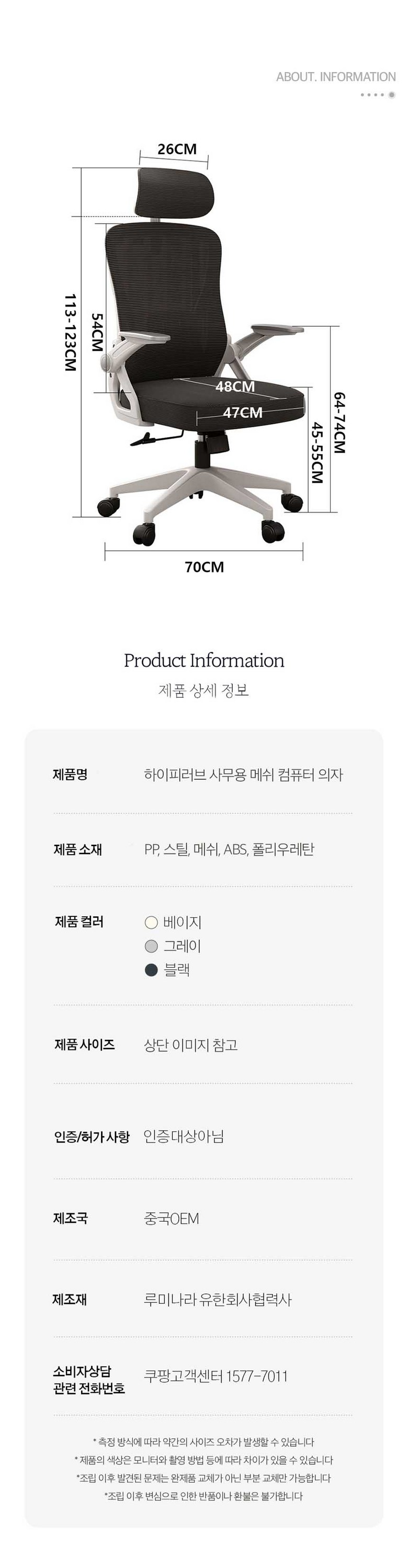 | 품명 및 모델명 | 하이피러브 사무용 메쉬의자 | 인증/허가 사항 | 인증대상아님 |