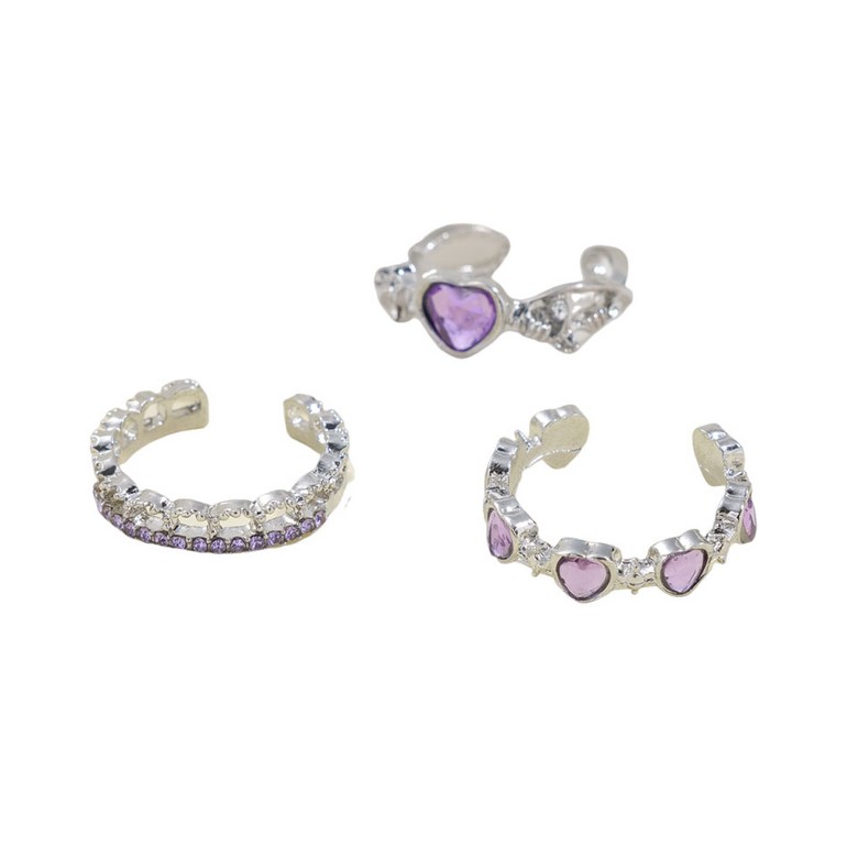 RoseAria 여성 하트 크리스털 반지 3종 세트