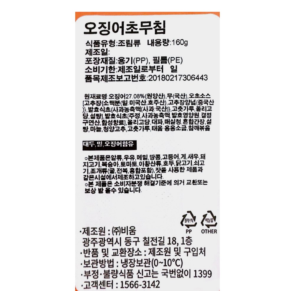| 제품명 | 오징어초무침 | 식품의 유형 | 컨텐츠 참조 |