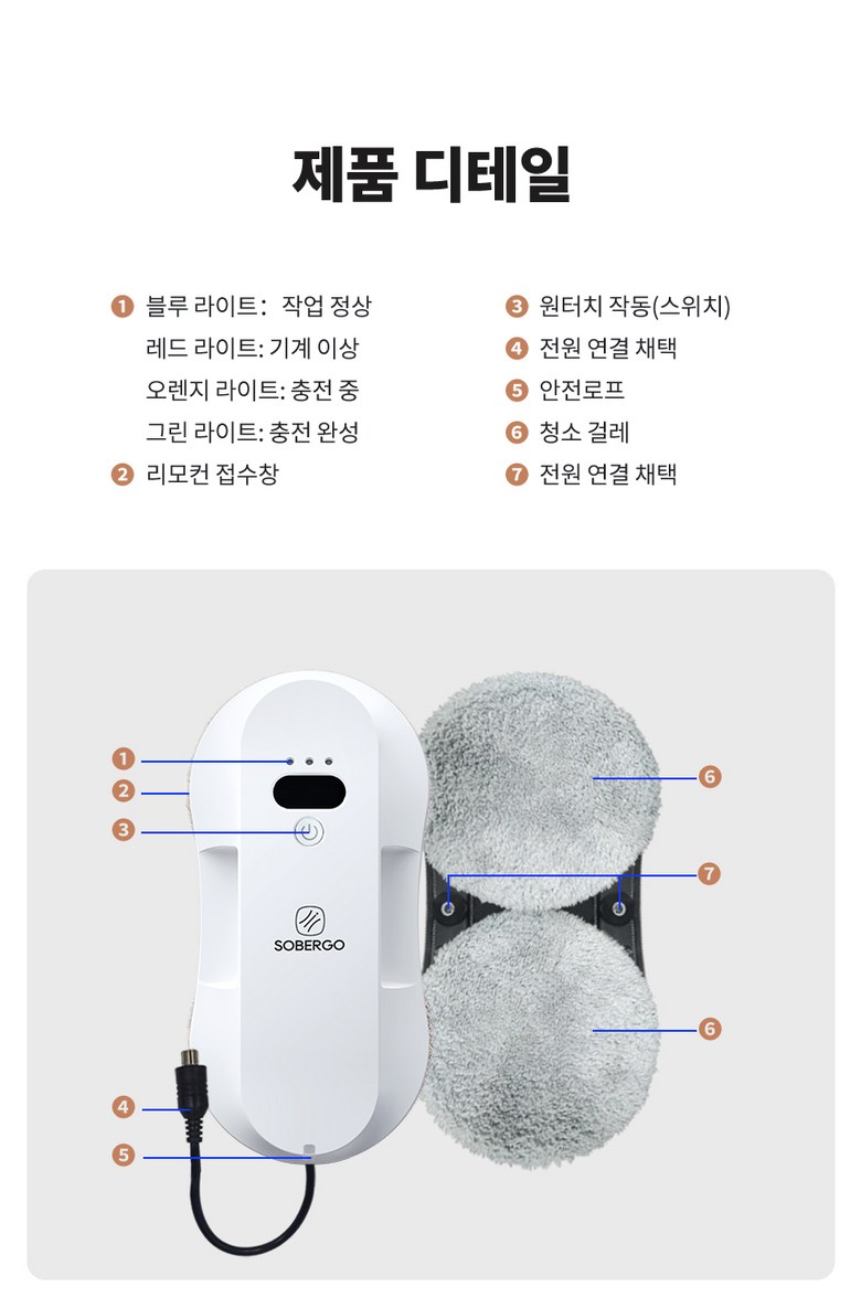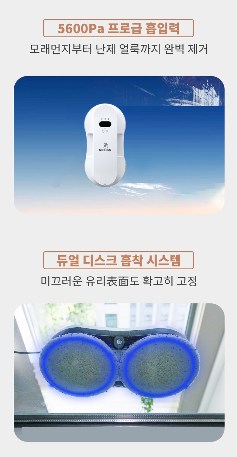 | 품명 및 모델명 | SOBERGO slim 6.2cm 유리창 로봇청소기 | KC 인증정보 | 상품 상세페이지 참조 |