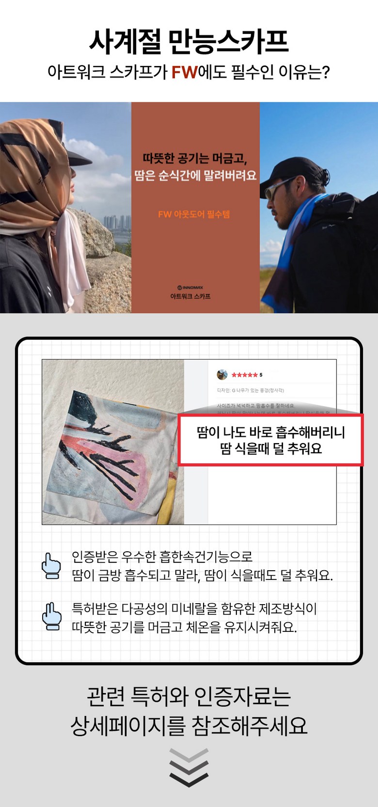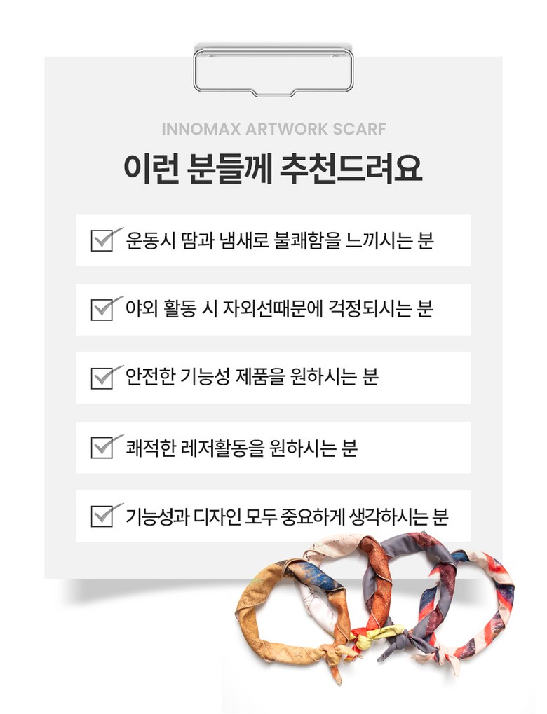 | 종류 | 기능성 스카프 | 소재 | 이노맥스 폴리에스테르 100 |