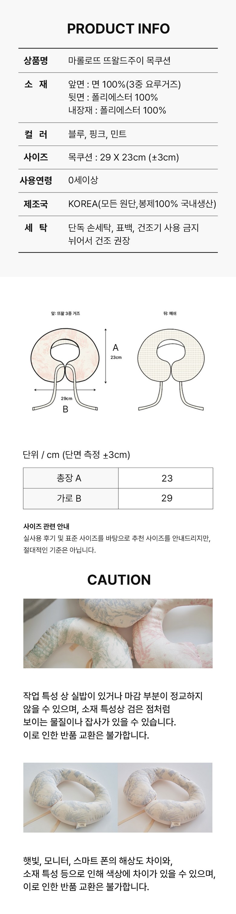 | 품명 및 모델명 | 마롤로뜨 뜨왈드주이 목쿠션 | 인증/허가 사항 | CB017M001-0006 |